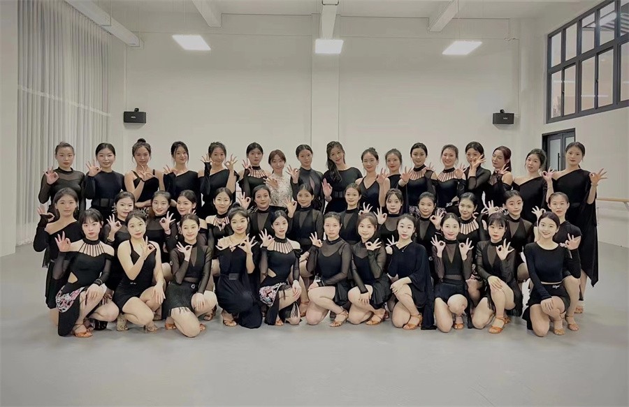 我校学生与明星舞蹈导师梁岱青排练合影