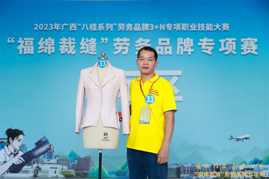 9月20日,由广西壮族自治区农民工工作领导小组办公室、广西壮族自治区人力资源和社会保障厅、广西壮族自治区总工会联合主办,玉林市人力资源和社会保障局、玉林市总工会、中共玉林市福绵区委员会、玉林市福绵区人民政府承办,玉林市福绵区人力资源和社会保障局、玉林市福绵区总工会、玉林市福绵区委人才工作领导小组办公室协办的2023年广西“八桂系列”劳务品牌3+N专项职业技能大赛——“福绵裁缝”劳务品牌专项赛在福绵国际牛仔电商轻纺城顺利举行。经过选手的激烈角逐,裁判组严格认真的评审,我校教师谭宏正获得服装制版师优胜奖,学生谭春李获得缝纫工优胜奖。