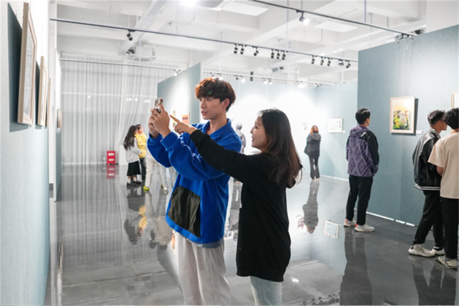 开幕式结束后,领导嘉宾与在场师生共同参观了此次作品展。