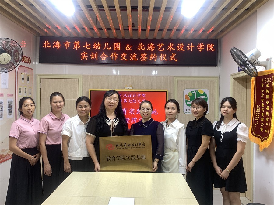 9月27日,我校教育学院与北海市第七幼儿园实训合作交流暨实践基地签约授牌仪式在北海市第七幼儿园启动。教育学院院长熊秀峰,实验室主任冯小霞,教务办主任黄海林,学前教育教研室主任覃思,市第七幼儿园党支部书记、园长张铮,副园长张均霞,办公室副主任邹华婷等出席仪式。