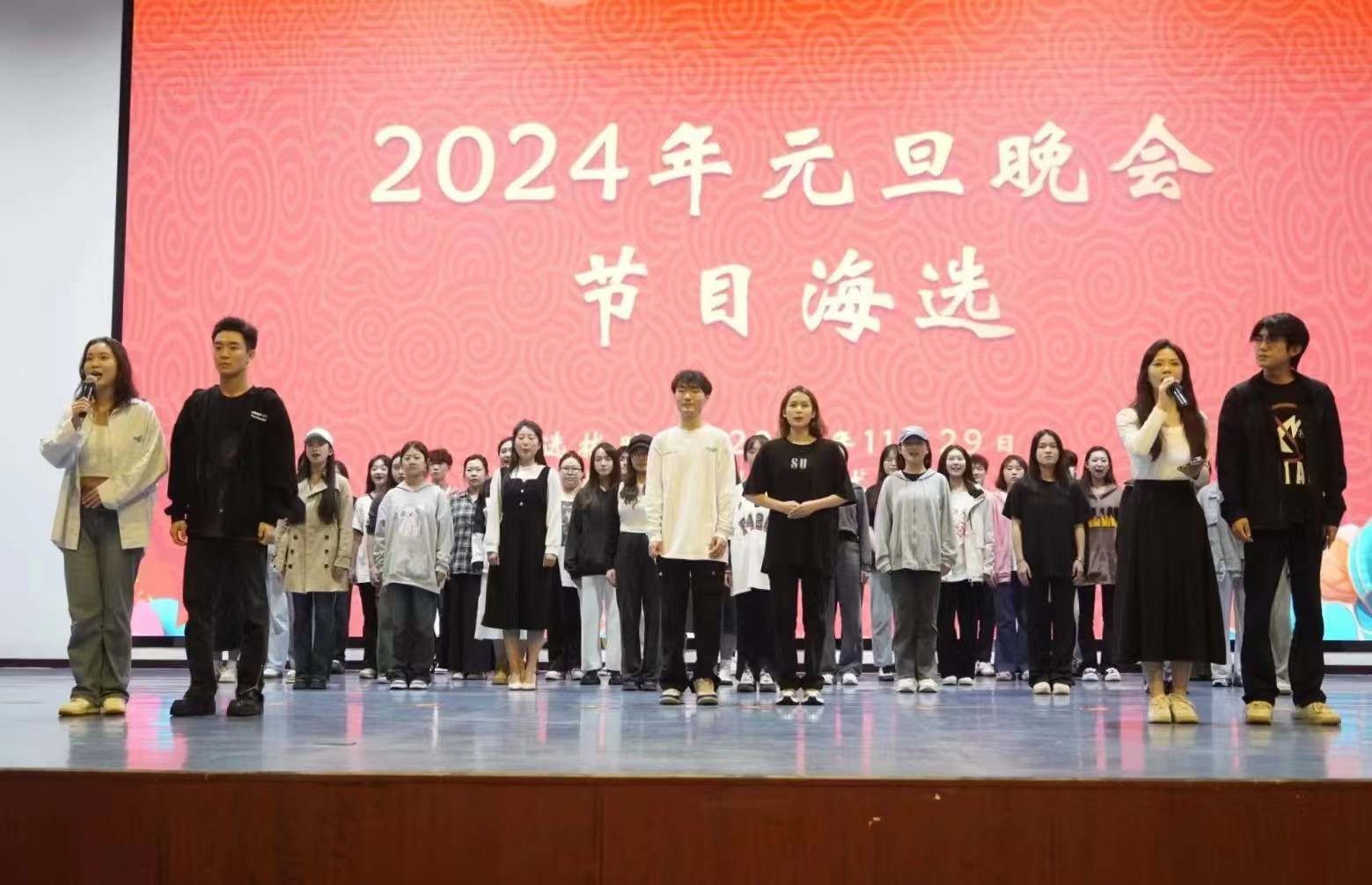 辞暮尔尔,年末的尾声正悄悄拉近,欢声笑语间,我校于11月29日在西校区大礼堂进行了2024年元旦晚会节目海选。