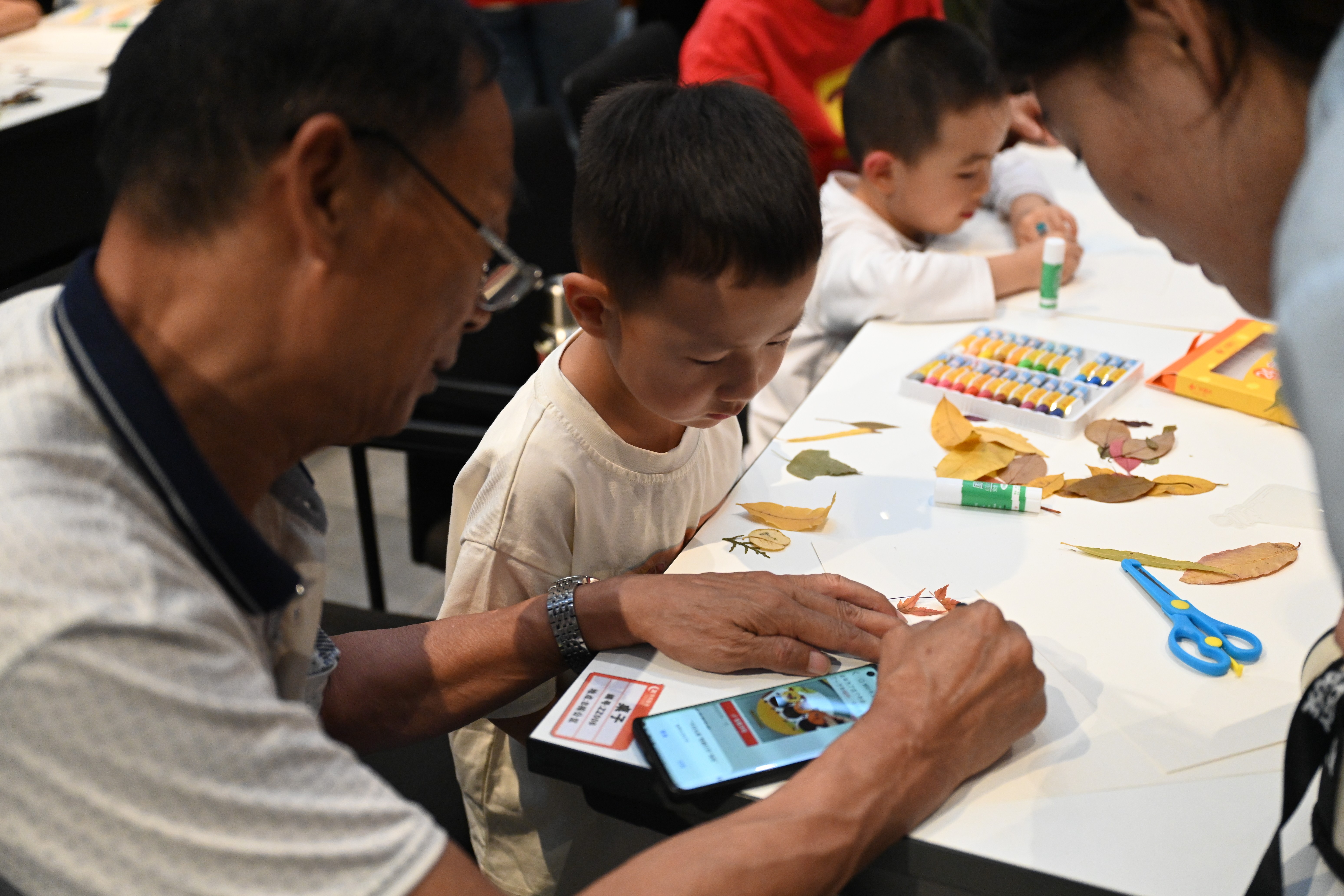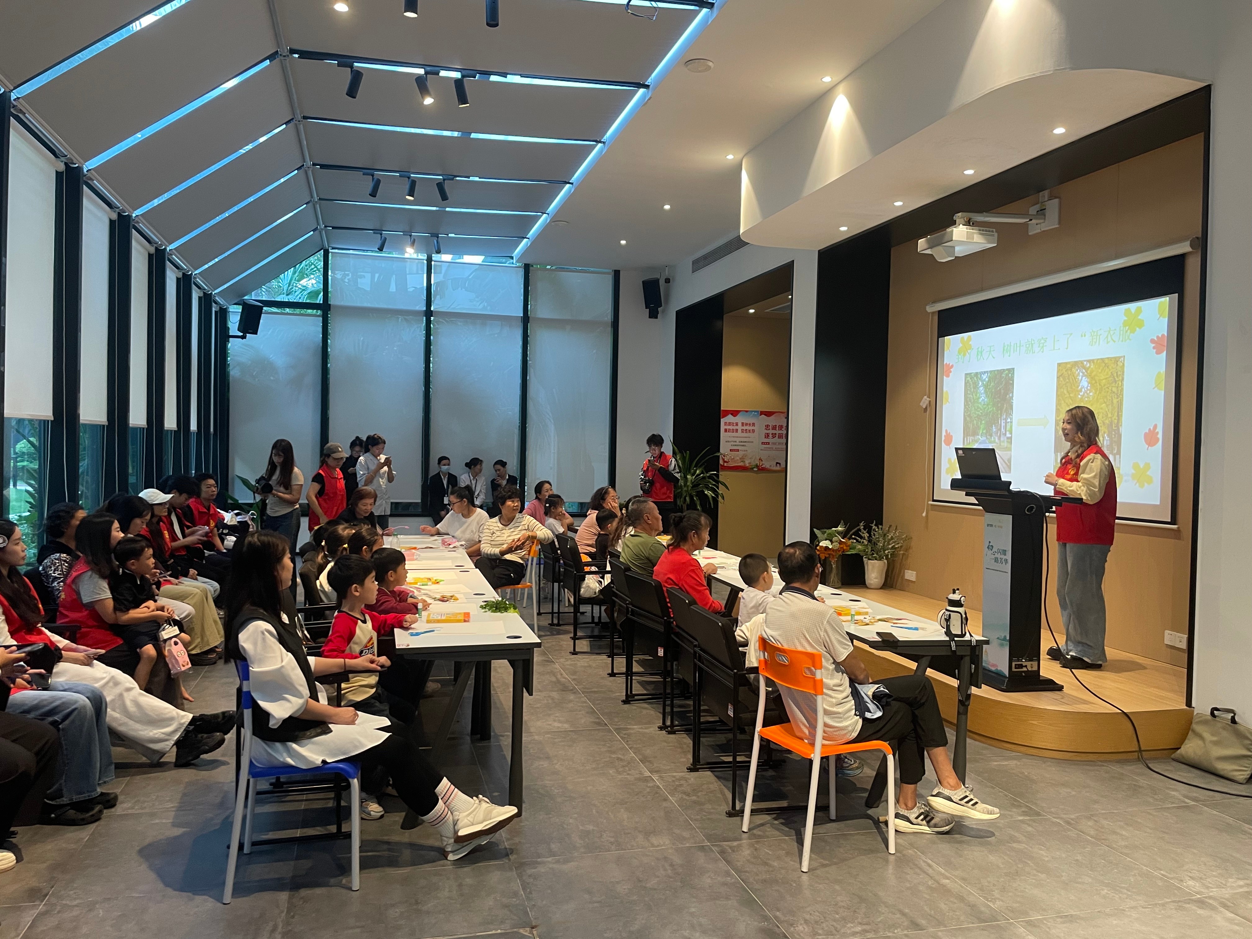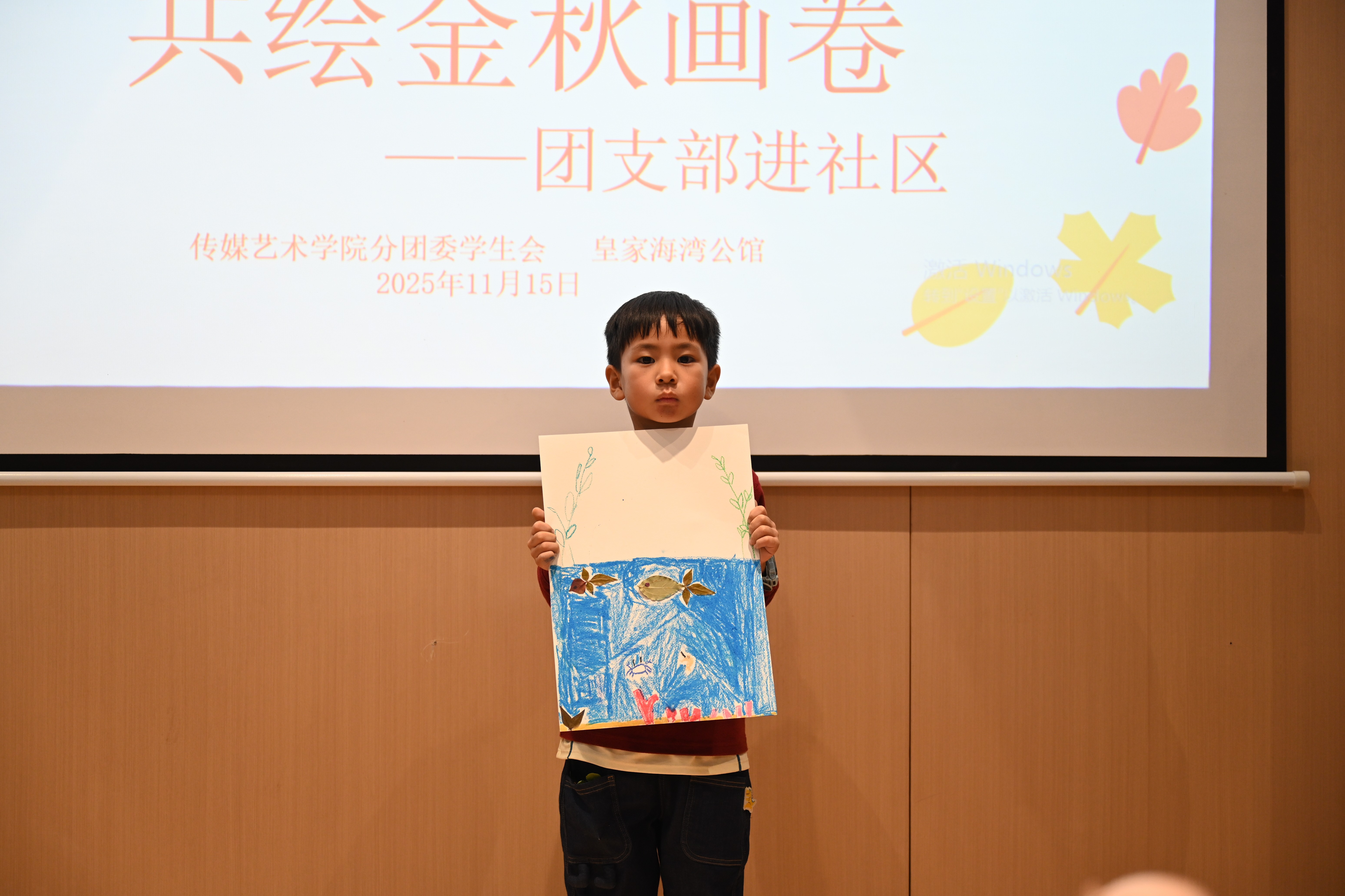 亲子绘画”在社区共享会议室温馨开启。传媒艺术学院的志愿者们充分发挥专业特长,化身“艺术导师”,引导孩子们以“我眼中的秋天”为主题展开创作。在志愿者一对一陪伴下,小朋友们挥洒童真色彩,将金黄的落叶、高远的蓝天、欢笑的家人一一呈现在画纸上。现场氛围温馨融洽,原本静谧的空间化作流动的色彩海洋,洋溢着浓厚的艺术气息与亲子温情。