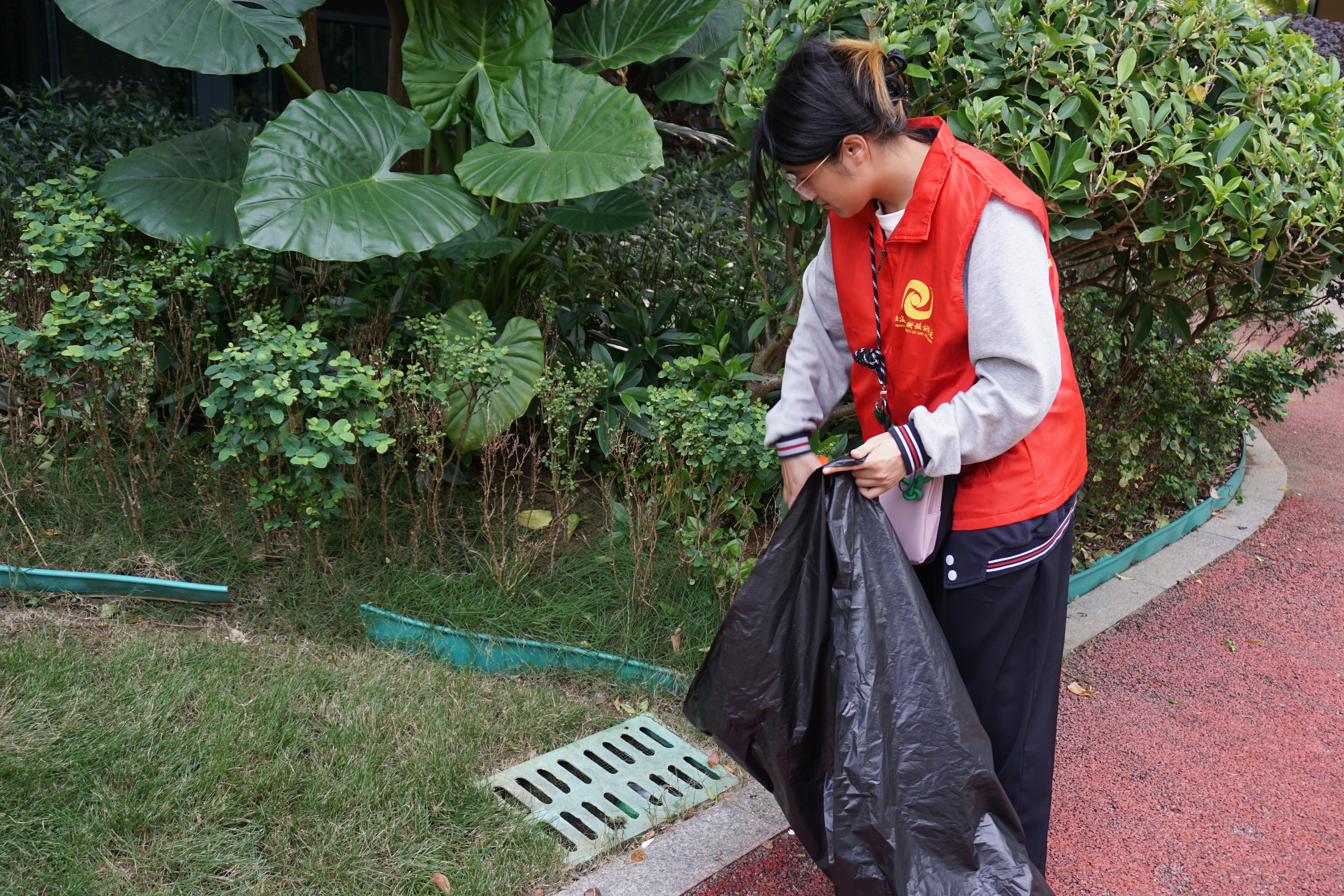 活动开始,志愿者们化身“清洁卫士”,在社区里热火朝天地忙碌起来。大家手持工具,分工协作,配合默契。汗水洒落处,社区焕然一新。那跃动的红色身影,与秋日金晖交织,构成了社区中最富活力的画面。他们不仅用劳动美化环境,更以实际行动传递出“社区是我家,清洁靠大家”的共建理念。