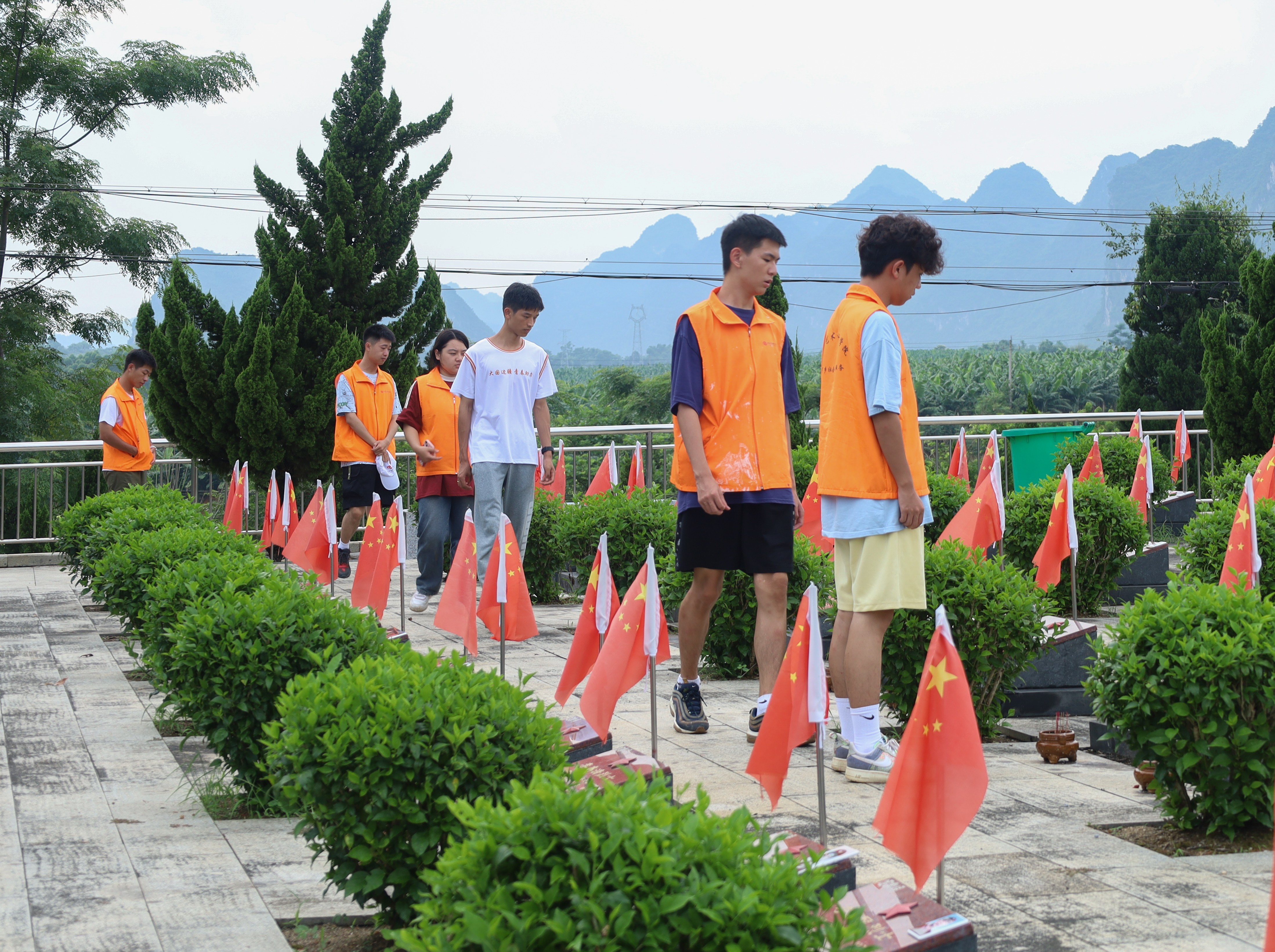 在龙州烈士陵园中,实践团成员深切缅怀为革命牺牲的先烈们,一座座烈士碑背后的动人故事更加坚定了我校青年报效祖国的决心,立志成为有理想、有信念的新时代青年。